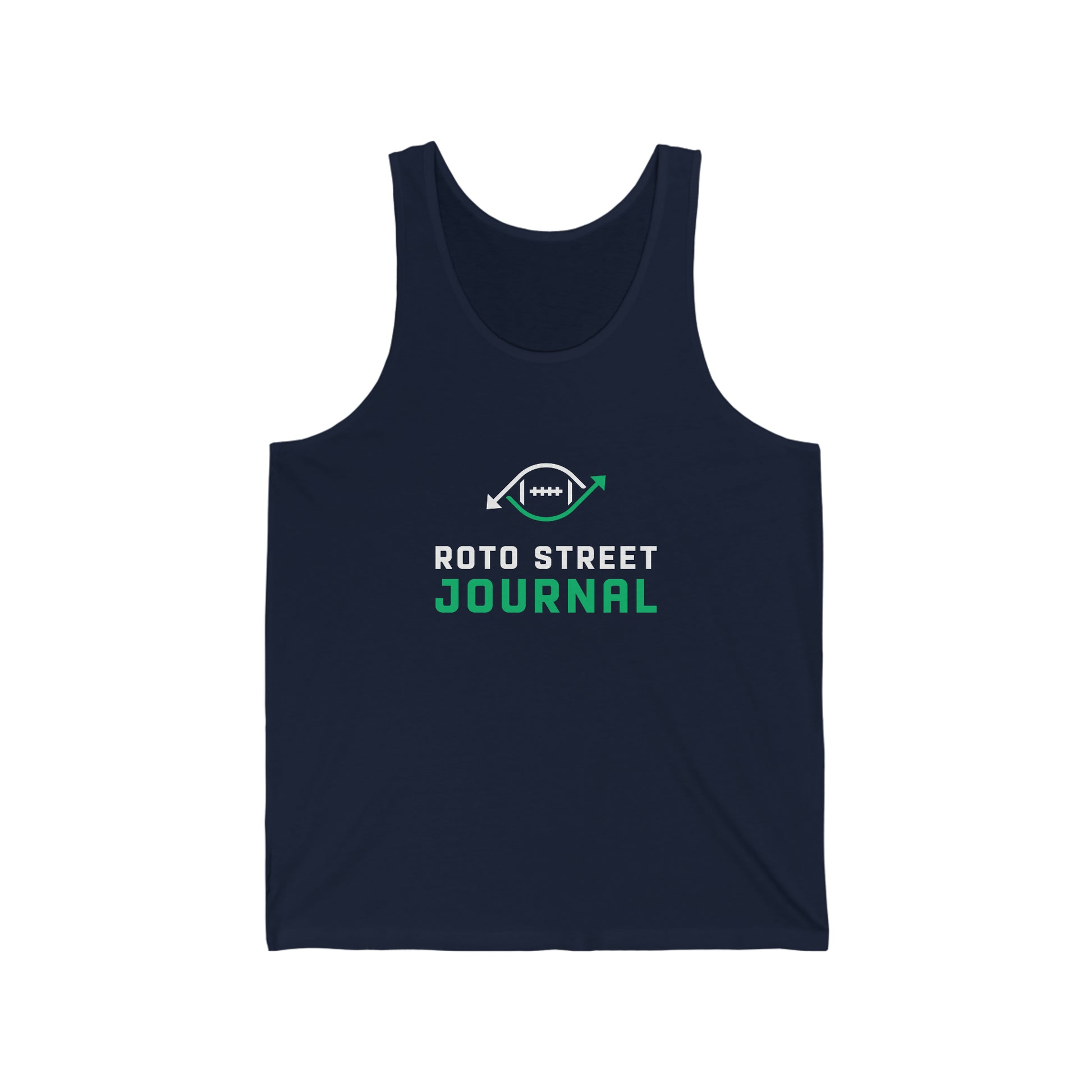 This must-have Roto Street Journal jersey tank top is perfect to rock at the beach or during the warmer months while you prep for the upcoming fantasy season. Its high-quality print displays the Roto Street Journal logo and fits perfectly on both men and women. This tank is essential if you're into showing off the beach bod or using it as a cover-up over your bathing suit while flaunting your wolfpack affiliation.